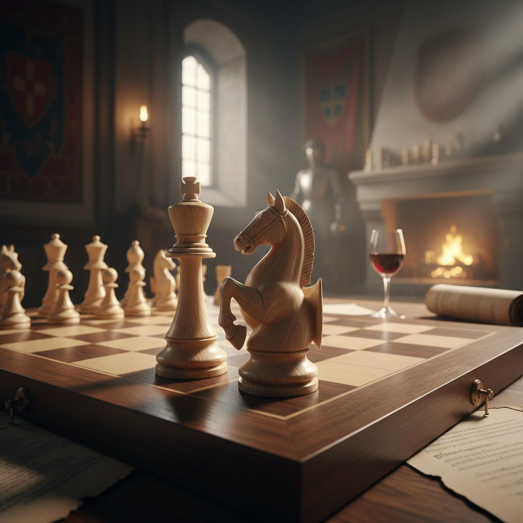 Ao lado do rei, estão os cavalos, peças que simbolizam agilidade, estratégia e proteção. Eles representam nossos serviços: contabilidade, controladoria, planejamento tributário e financeiro. Somos como esses cavalos — sempre atentos, rápidos e estratégicos — atuando ao lado dos nossos clientes para proteger, fazer crescer e apoiar em cada tomada de decisão.